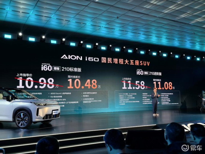 易车讯11月16日,广汽埃安i60正式上市,上市指导价10.98-13.58万元,限时焕新价10.48-13.08万元,并可享受十大专属权益。新车定位为紧凑型SUV,采用最新的家族设计语言,推出纯电和增程两种动力。