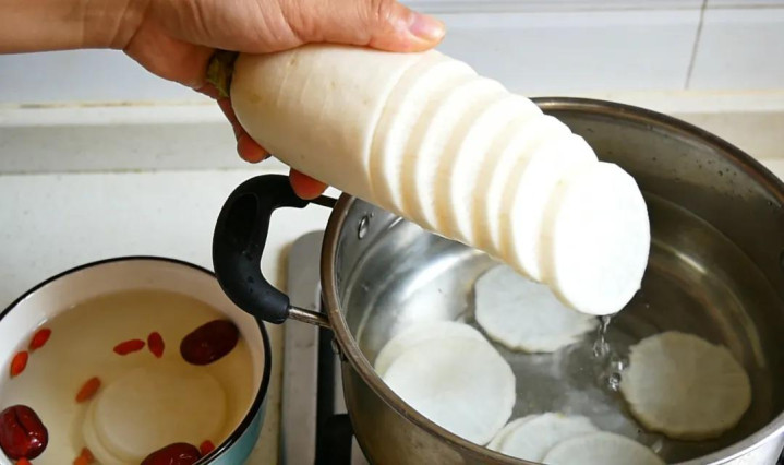 取200-300克白萝卜,去皮切成薄片或小块,放入锅中,加入适量清水煮沸后,再煮10-15分钟。